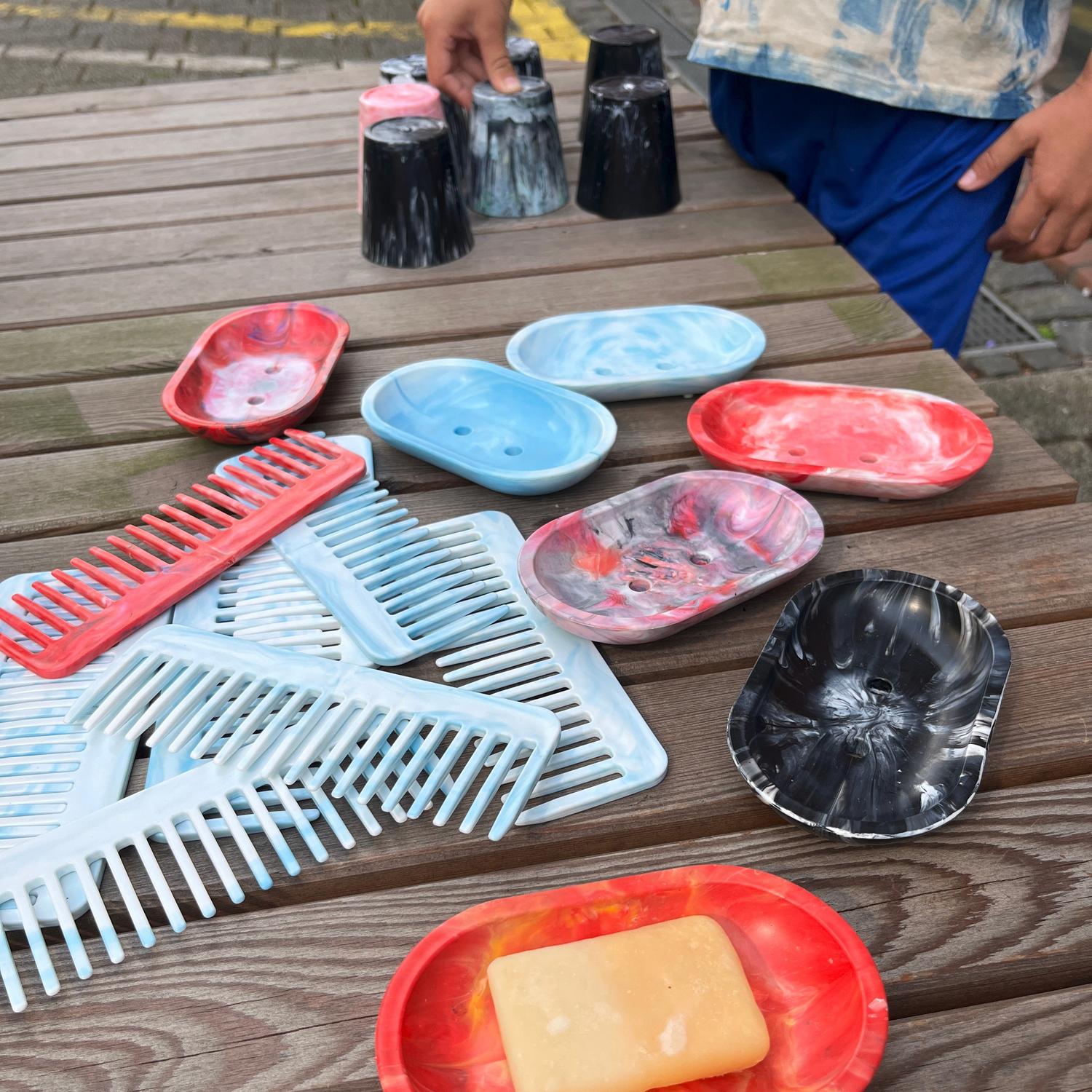Wir sammeln lokale Plastikabfälle mit euch und verwandeln sie in Gebrauchsgegenstände und Kunst.